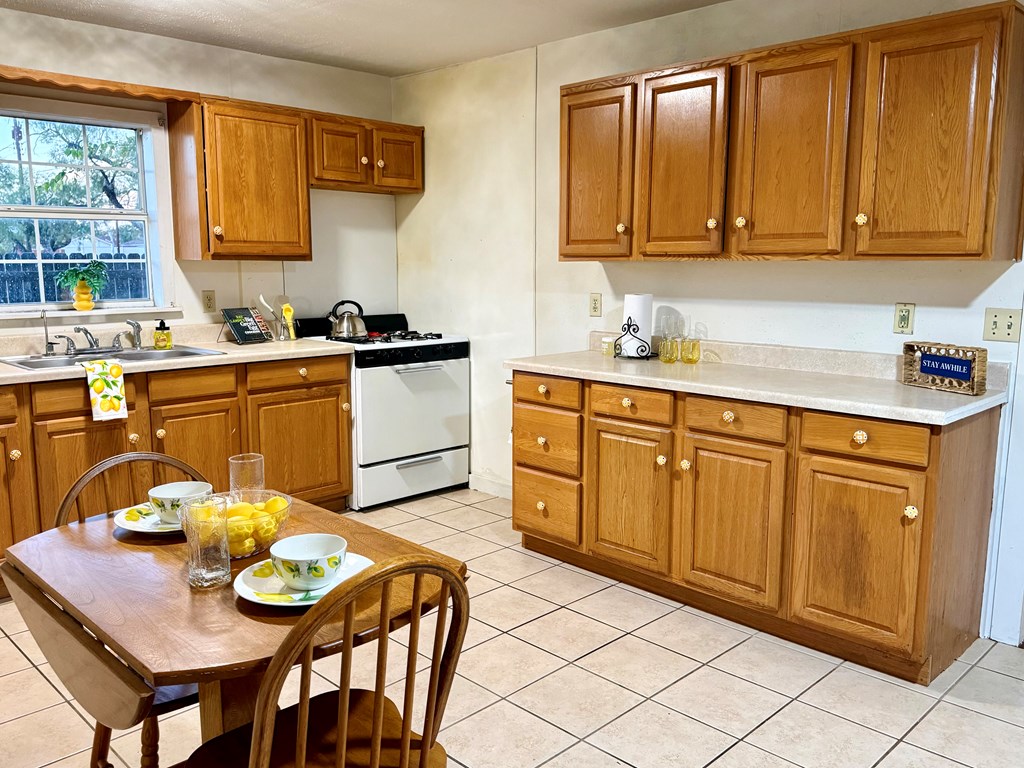Welcome home to this charming 2-bed, 1-bath property situated on a desirable corner lot! This home features a spacious kitchen with generous countertops space, abundant cabinet storage, a built-in desk, and a gas stove-perfect for everyday cooking. The dedicated laundry room includes built-in shelving for extra organization. Outside, enjoy the convenience of a carport, a drive-thru gate for easy access, and a fenced yard. A comfortable mini-split system keeps the home cool and efficient. This property is great for first-time buyers, downsizing, or investment.